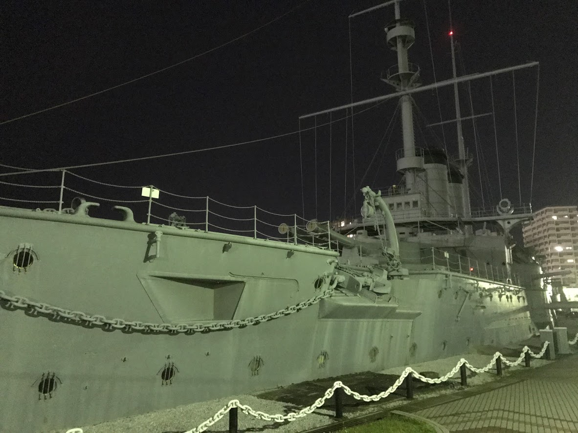 聞けば、飲んでいる店の近くで明治時代の戦艦があるのだとか。