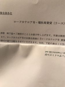 年に1度の臨時ボーナスの案内がロードサラブレッド何とかから届きました。