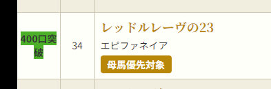 17日の21時時点では以下の馬が400口突破となっています。