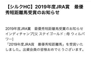 JRA賞の発表を知ったのはシルクホースクラブからのメールでした。