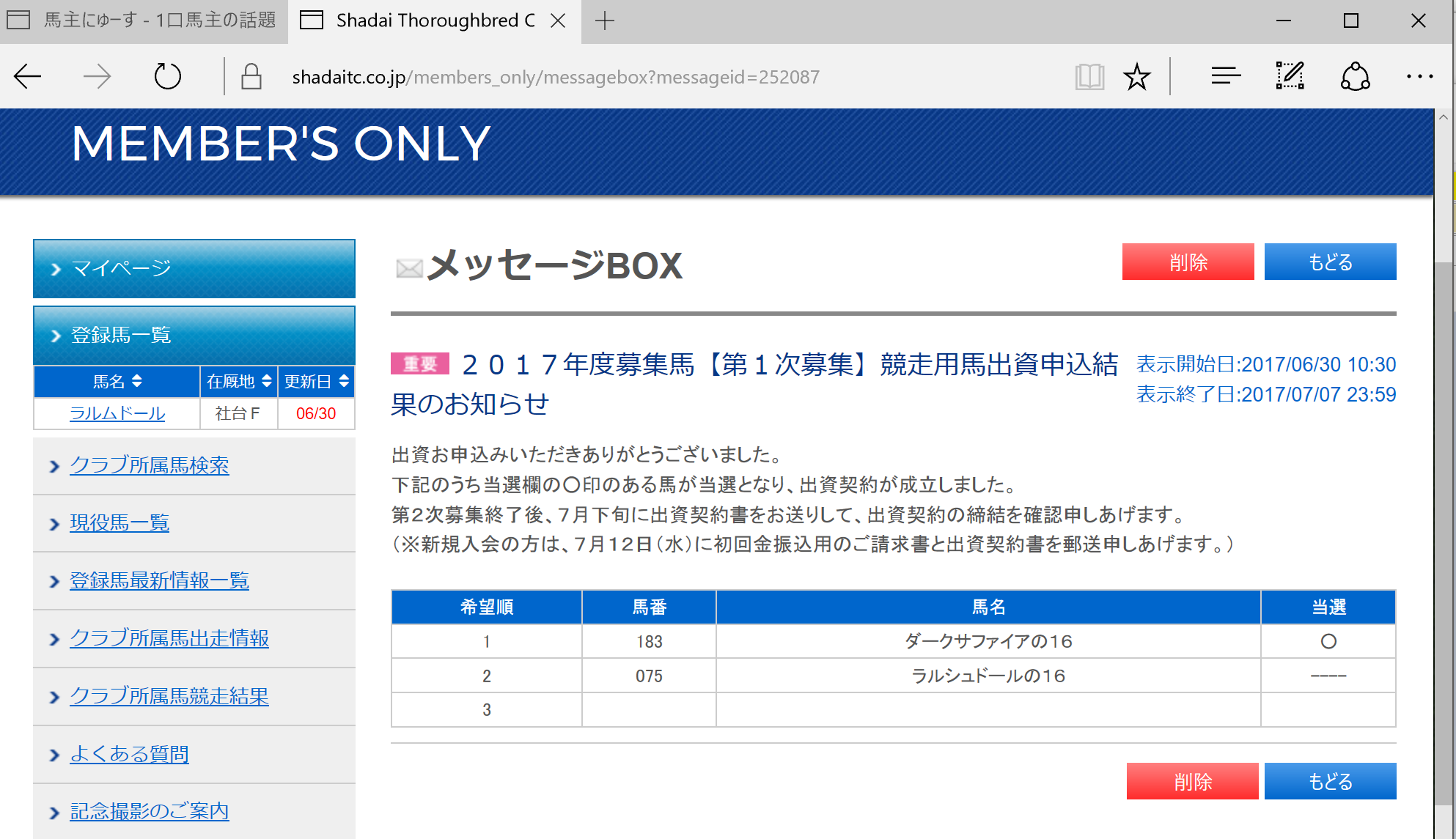 <第1次募集第1希望が41通以上の募集馬>